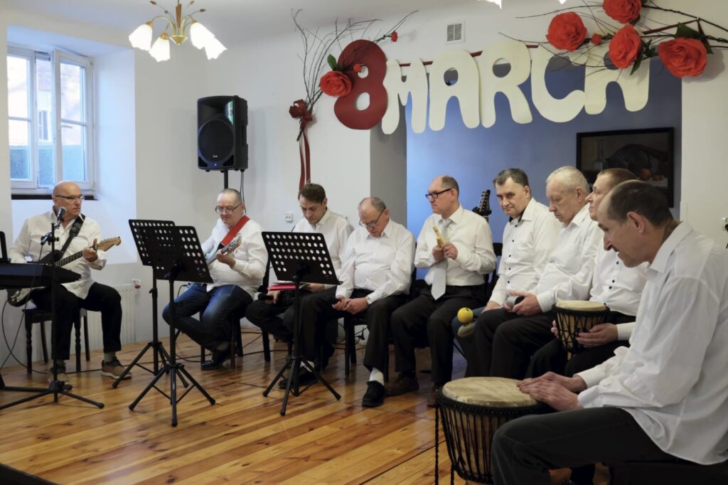 8 marca był uroczystym dniem w naszym Domu. Panowie z Zespołu „Konkret” przygotowali program artystyczny i obdarowali każdą z Pań symbolicznym kwiatem. Całości dopełniły życzenia oraz tradycyjne polskie „sto lat”