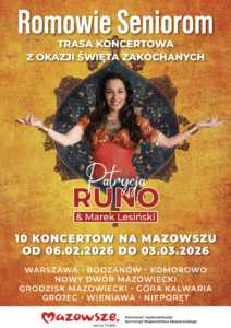 9 lutego odbędzie się występ Patrycji Runo i Marka Lesińskiego w ramach Trasy Koncertowej „Romowie Seniorom” z okazji Święta zakochanych. PARTNEREM WYDARZENIA JEST SAMORZĄD WOJEWÓDZTWA MAZOWIECKIEGO
